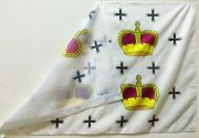Флаг Дмитрова 135х90см. Материал полиэфирный шелк. Устойчив к воздействию ветра, солнца, осадков. Есть кармашек под древко.